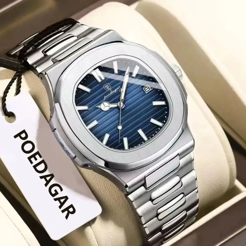 This luxury square timepiece combines bold design with precision quartz movement. Its durable stainless steel construction and waterproof features make it the perfect accessory for both business and sport.